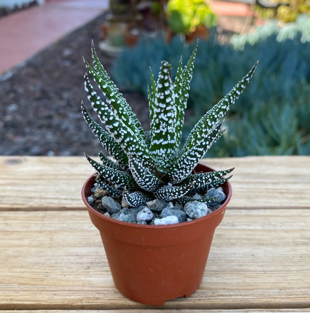 Haworthia (e.g., Zebra Plant) displays striped, spiky rosettes safe for tabletops in bright, indirect spots.