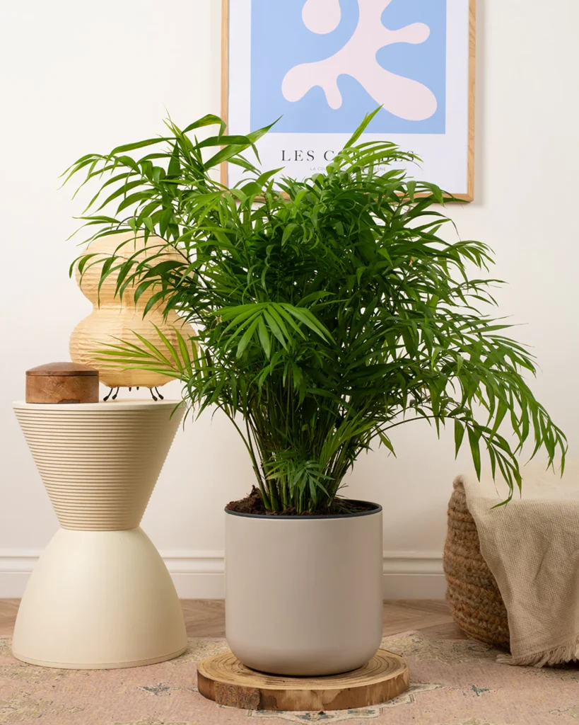 Parlor Palm (Chamaedorea elegans) grows 3-8 feet tall in low to medium light, with feathery fronds that require watering only when the top inch of soil dries; it’s highly tolerant of neglect.